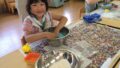 暑い中お父さん、お母さんの協力で餃子の皮作りから体験。色々な形の餃子ができました。流しそうめんも楽しんで、その後のゲームも、グループで力を合わせて頑張りました。